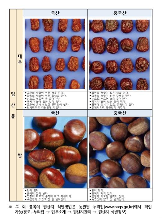 또한, 올바른 원산지 표시 정착을 위해 전통시장 등에서 특사경·소비자단체 명예감시원·시장상인회와 합동 캠페인도 실시할 계획이며, 소비자들이 제수용품 구입에 도움이 될 수 있도록 국산과 외국산 농산물 원산지 식별정보*를 누리집을 통해서 제공한다.