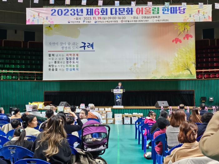 구례군가족센타는 지난 19일 구례군 실내체육관에서 구례군에 거주하는 다문화가정과 지역주민 등 400여명이 참석한 가운데 2023년 다문화가족 어울림 한마당 행사를 가졌다.
