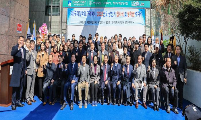 김광태 구례장학회 이사장은 “입사생 여러분은 고향의 자랑이며, 앞으로 구례와 우리 사회를 이끌어갈 소중한 인재들로 앞날에 무궁한 발전과 행복, 행운이 함께하기를 기원한다”고 하였다.
